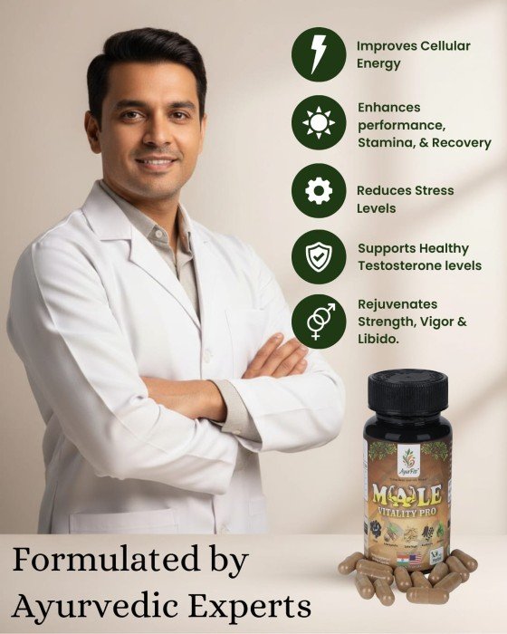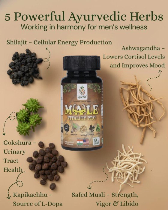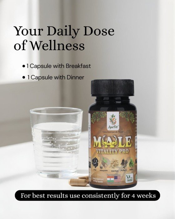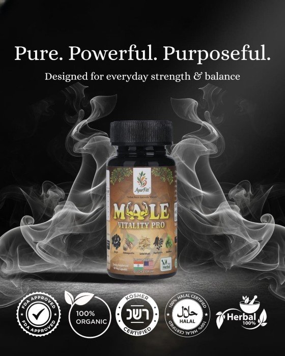 Male Vitality Pro is a carefully crafted Ayurvedic supplement by Ayurfitt, formulated specifically to support men’s health needs. Blending time-tested herbs with modern quality standards, this supplement is designed to help enhance vitality, endurance, and overall physical wellness.